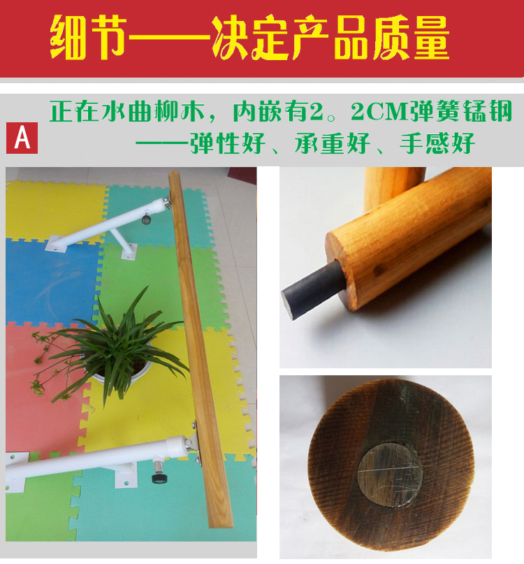 四川成都悬挂式舞蹈把杆厂家专业研发制作正宗水曲柳木质把杆表面清漆养护真实木纹,运用精湛工艺深加工而成的正圆形质地紧实,木材切面光滑经久耐用,纹理清晰,美观握感恒温舒适。本厂有着多年的舞蹈把杆生产经验,产品质量历年来被国家体育用品质量监督检验中心检验合格,在同类产品生产行业中,质量领先。请广大用户放心购买!