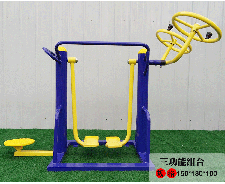 户外健身器材各款式健身器材使用方法:太空漫步机:切忌摆动幅度过大。特别是老年人肌肉柔韧性差,如果双腿摆动的幅度过大,速度过快,室外健身器材种类,很容易拉伤脊柱周围的肌肉。因此,室外健身器材哪家好,摆腿的幅度应在45°左右,频率控制在每次3秒左右为宜。蹬力训练器:髋骨软化症老人禁用。髋骨软化症主要症状就是平时常有膝下痛。这样的老年人,本来髋关节的负重功能就不好,室外健身器材供应,如果再进行蹬力器锻炼,伸膝肌群就可能会受损,从而加重病情。健骑训练机:椎间盘突出者别碰。这项运动很适合那些经常伏案、颈肌和腰肌都有劳损的人。但如病情已发展到椎间盘突出,千万不要使用。牵引训练器:先试行引体向上。如果连一个引体向上都无法完成,最/好别用。手力不够的老年人最/好也不要做这项运动。